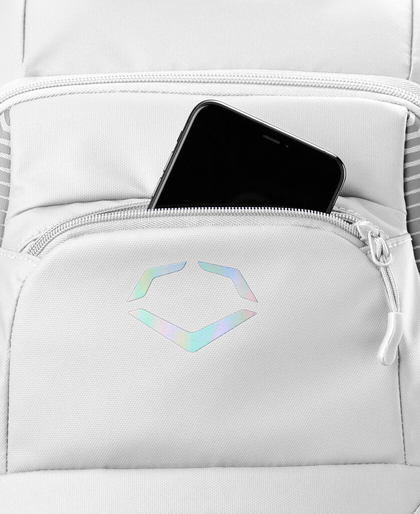 Organization is at the core of the EvoShield Tone Set design, featuring specialized neoprene bat sleeves that securely hold up to two bats. A dedicated ventilated shoe compartment keeps your cleats separate from your clean gear, while the fleece-lined valuables pocket provides a soft, safe space for your phone and keys. For added convenience, the bag includes an integrated fence hook for easy hanging and corded zipper pulls for quick access. Available in classic team colors like Navy, Royal, Team White, and Scarlet, this backpack combines a professional look with the durability you expect from EvoShield.